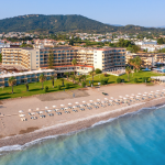Sun Beach Resort Apartments on yksi Rodoksen suosituimmista perhehotelleista ja se koostuu kahdesta hiljattain uudistetusta rakennuksesta. Sekä Rodoksen lentokenttä kuin keskusta sijaitsee noin 10 minuutin ajomatkan päässä hotellilta ja rannalle puolestaan on vain muutama askel allasalueelta. Lomakeskus sijaitsee puutarhan ympäröimällä kauniilla alueella, jossa on upeita virkistymismahdollisuuksia.